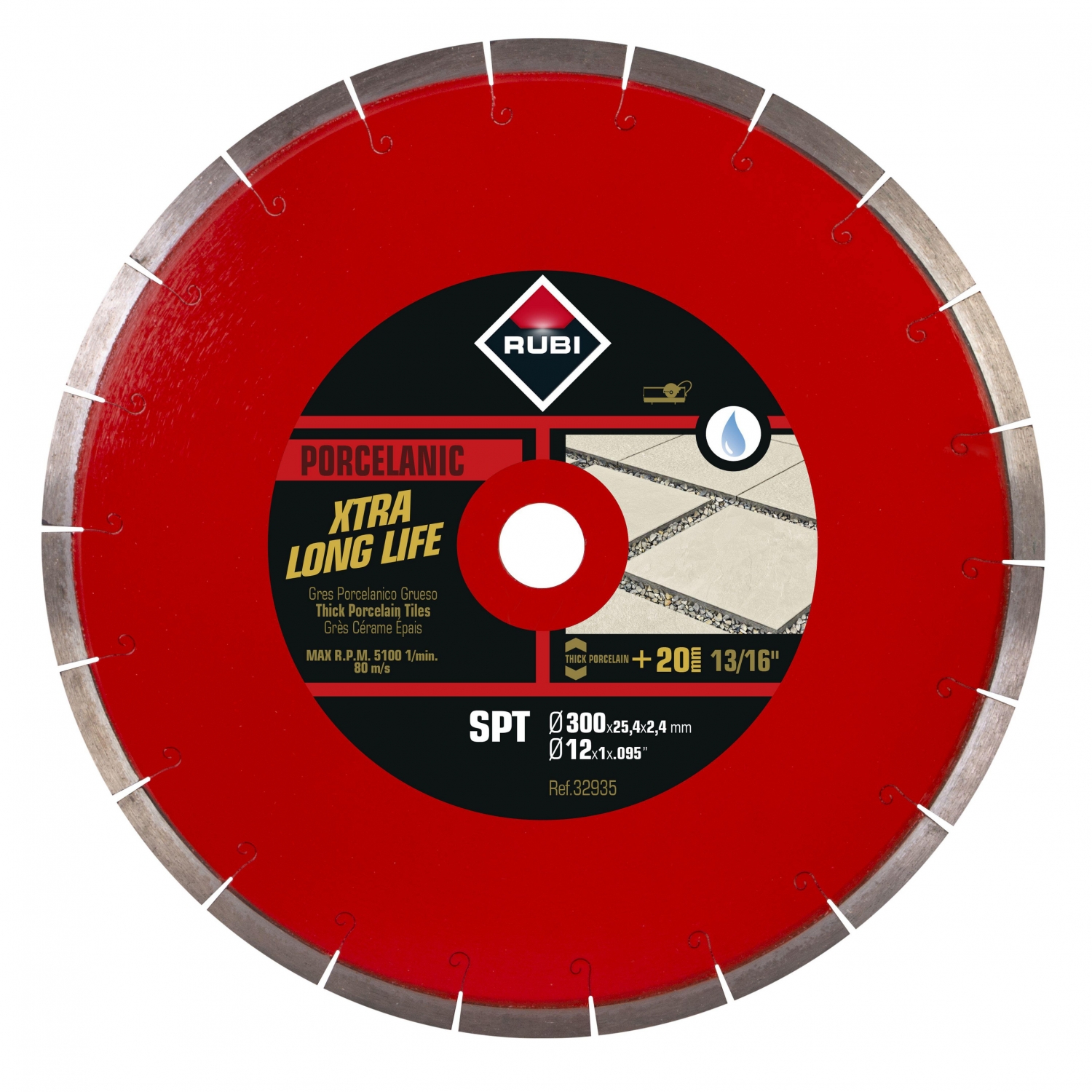Pretože ide o segmentovaný kotúč s úzkym zárezom a mokrým rezom, kotúče RUBI SPT PREMIUM môžu pracovať s hrúbkou materiálu až 35 mm a materiálmi tak rozmanitými, ako je prírodný alebo sintrovaný kameň